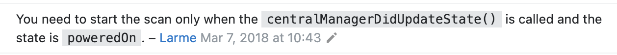 [CoreBluetooth] API MISUSE: <CBCentralManager: 0x2821e4120> can only accept this command while in the powered on state