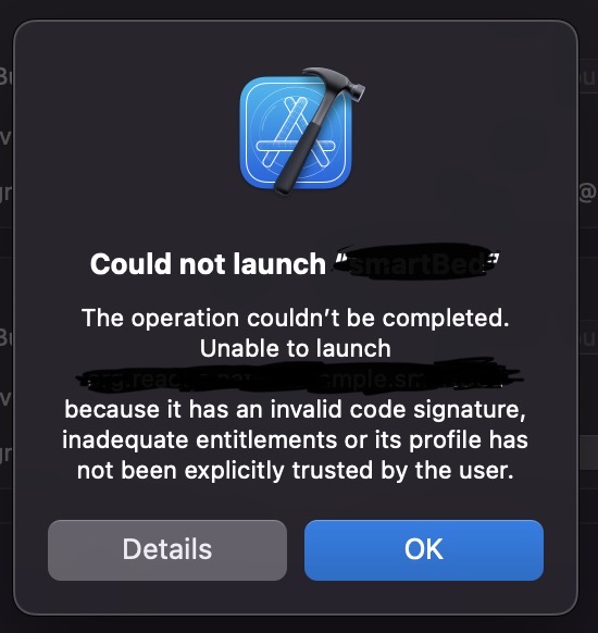 inadequate entitlements or its profile has not been explicitly trusted by the user.